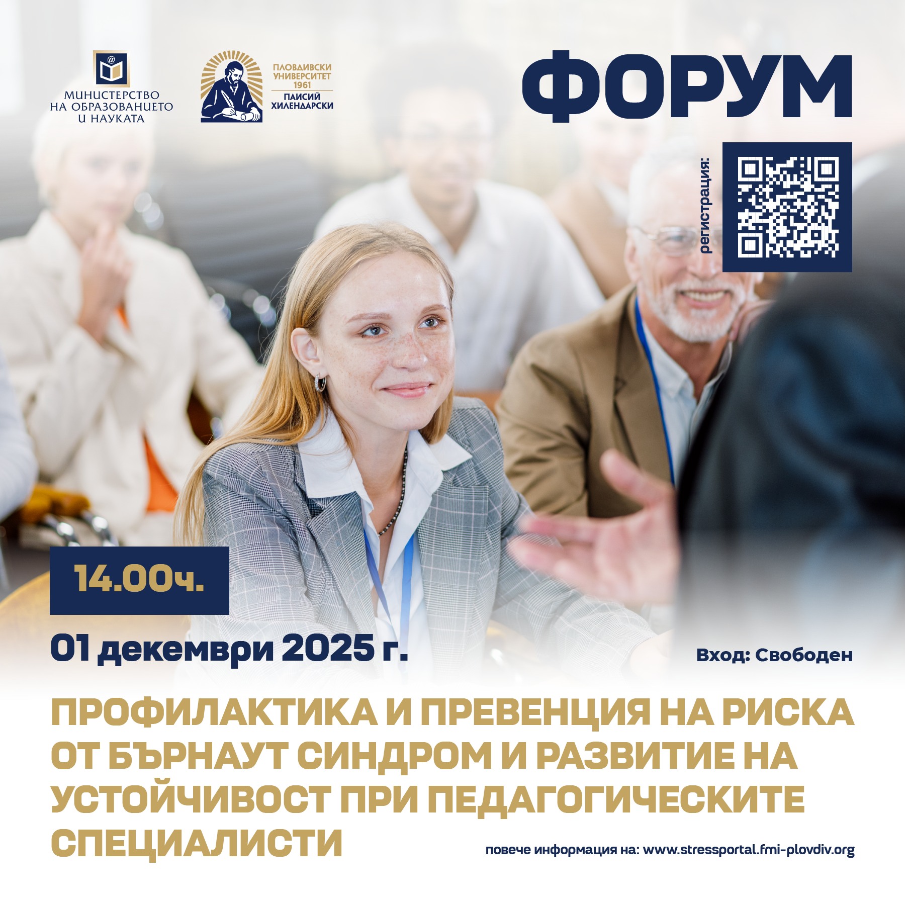 Данни от национално представително изследване, посветено на равнищата на стрес и опасността от професионално прегаряне сред педагогическите специалисти, ще бъдат оповестени на мащабен форум в Пловдивския университет „Паисий Хилендарски“. Представители на МОН, на образователните институции от цялата страна, на университетската общност, учителските синдикати, работодателски организации и практикуващи експерти ще обсъдят решения и политики за изграждането на психическа устойчивост в образованието.