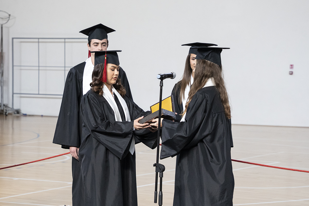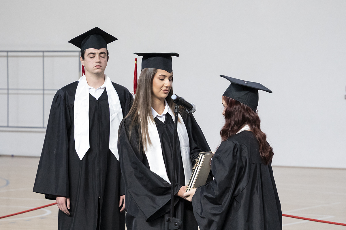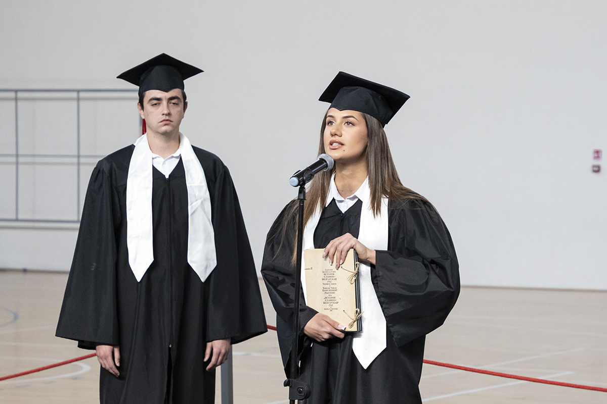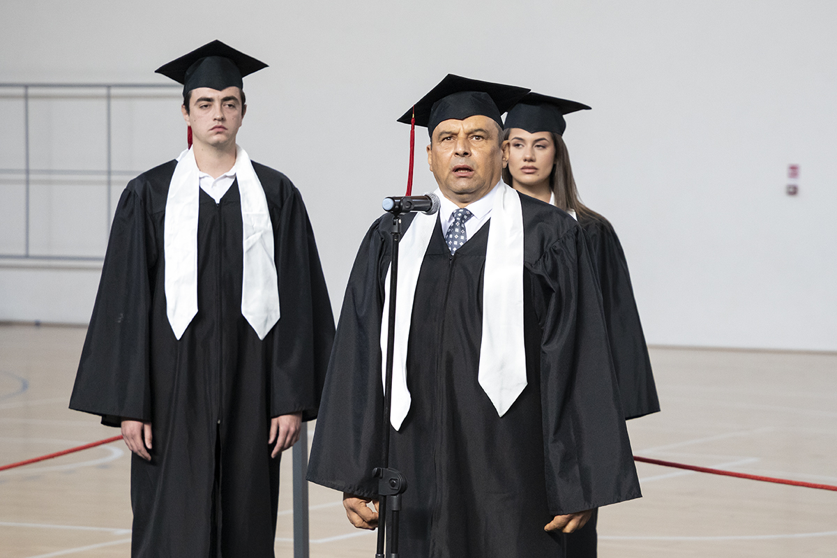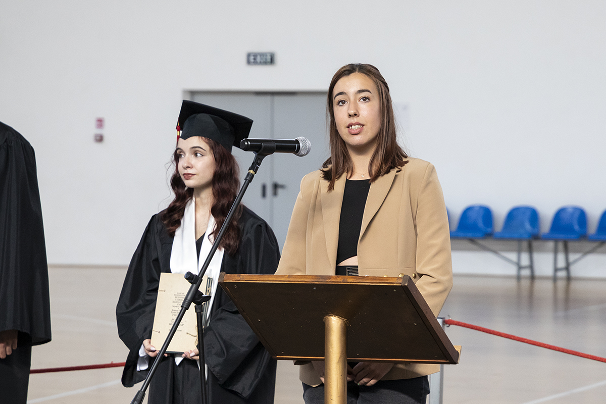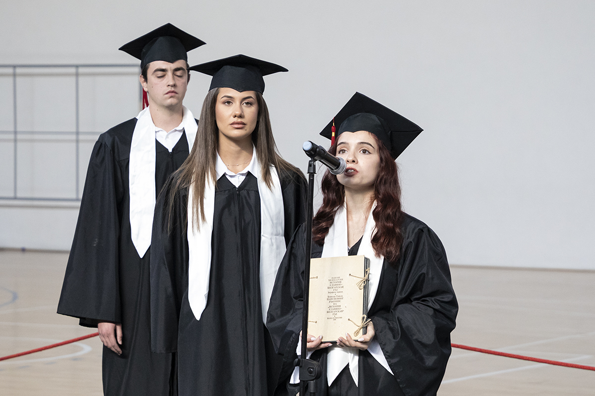 От името на първокурсниците слово произнесе Белослава Гюрова, приета в специалност Българска филология. По традиция на церемонията и тази година на първокурсниците бяха предадени университетските инсигнии – символичният ключ към университетското знание, знамето на висшето училище и копие от „История Славянобългарска“, написана от Паисий Хилендарски през далечната 1762 г.