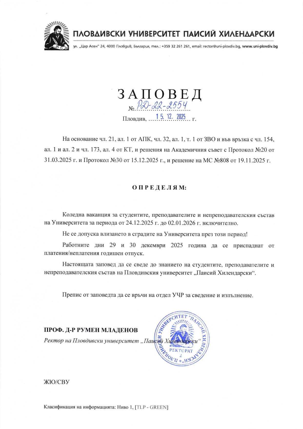 - Заповед за годишния отпуск за 2025 г.