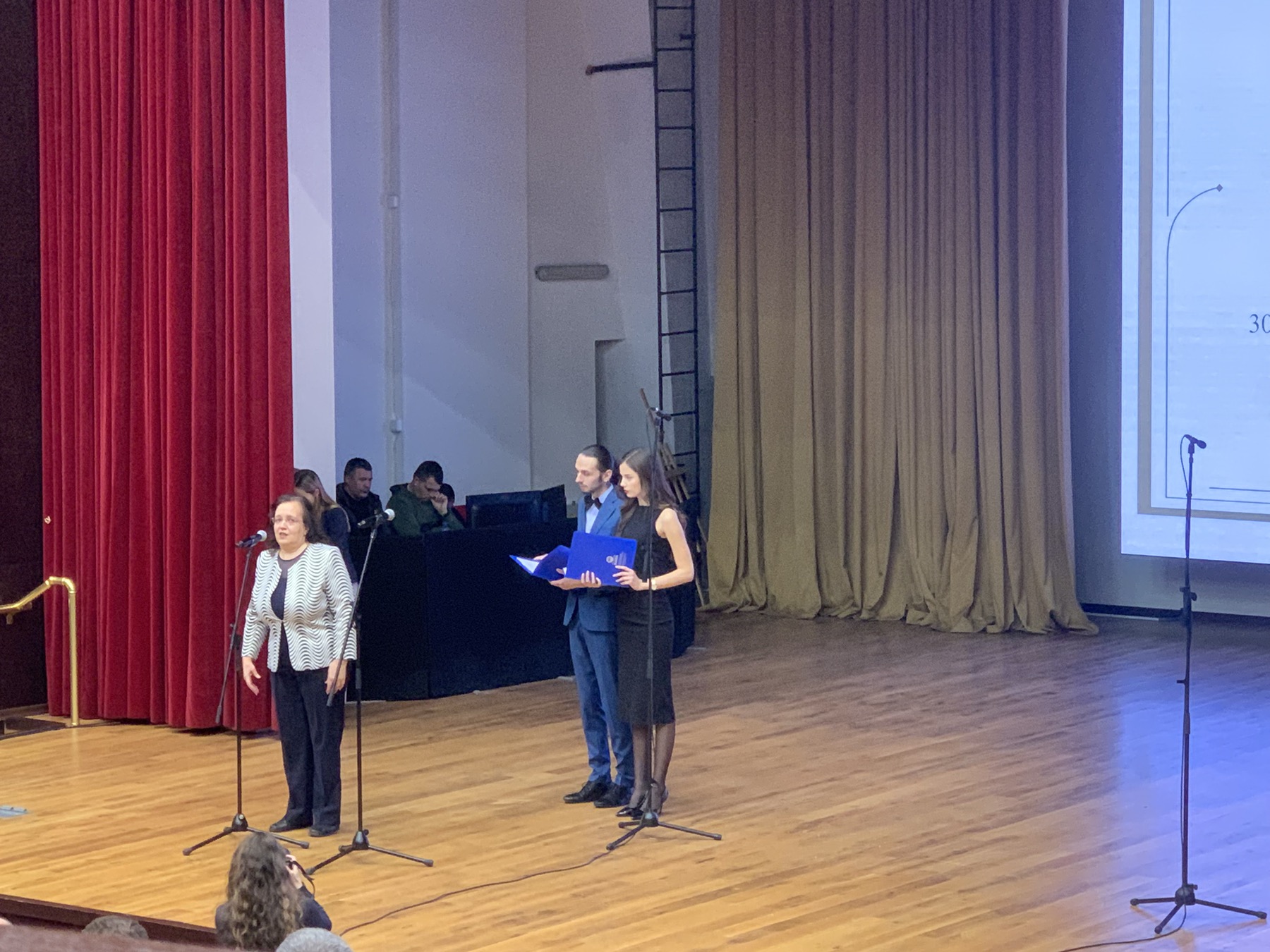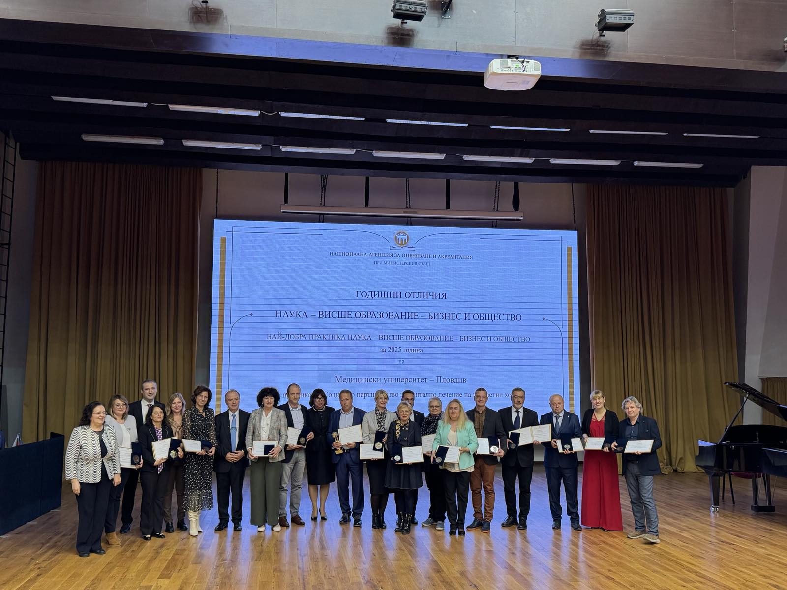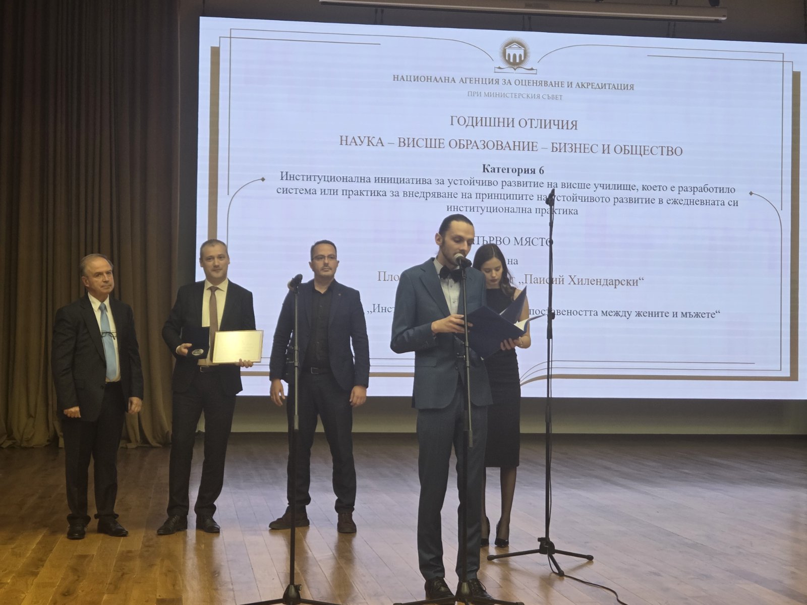 Връчване на награда за добра практика Институционализация на равнопоставеността между жените и мъжете в ПУ на церемонията по връчването на новоучредените годишни отличия на НАОА за добри практики „Наука – Висше образование – Бизнес и общество“, 28.10.2025, София