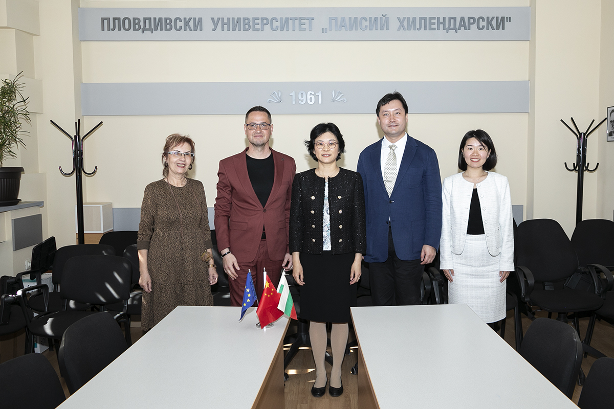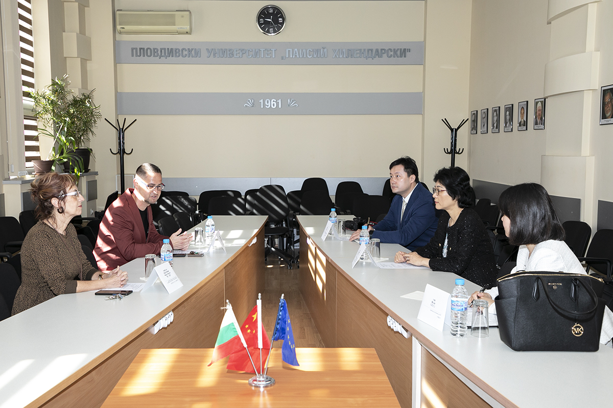 Среща между ръководството на ПУ и временно изпълняващия длъжността посланик на КНР. Церемония по връчване на Стипендията на посланика на КНР за 2024г. /03.04.2024 г./